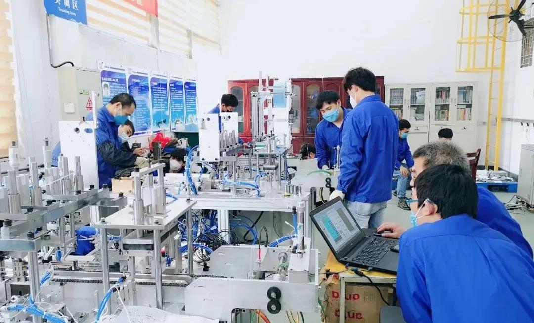 口罩生產(chǎn)快,全靠機器帶,為了提高口罩產(chǎn)量,廣西汽車集團也采購了口罩機,但恰逢春節(jié)和疫情疊加效應(yīng),口罩機所需的零部件供應(yīng)鏈非常不順暢,許多口罩機訂單交付延期,公司的訂單也在其中。時間就是生命,為搶抓時間,公司再次選擇自力更生,自制口罩機。?2月28日,公司裝備自制團隊3小時集結(jié)14名技術(shù)專家,24小時出圖超300張并敲定設(shè)計方案。?綜合當(dāng)時疫情以及物流影響,在機加工能力、元器件供應(yīng)緊缺情況下,采購中心和裝備團隊搶時間、搶進度、搶資源,充分發(fā)揮自主加工優(yōu)勢,完成180多個關(guān)鍵模塊零件加工,實現(xiàn)人停機不停24小時輪番作業(yè),自主加工率超過60%,為整線集成贏得時間和主動權(quán)。3月8日零件全部到位后,僅用1天時間就完成整線組裝,立即進入機械、電氣穿插調(diào)試。團隊連軸運轉(zhuǎn)96小時,累計攻克平行送料、打片、鼻梁加強線斷料、裁剪、耳帶焊接、三機聯(lián)動等技術(shù)難題。3月12日,自主設(shè)計制造的首條自動口罩線完成調(diào)試,第一批產(chǎn)品合格下線。