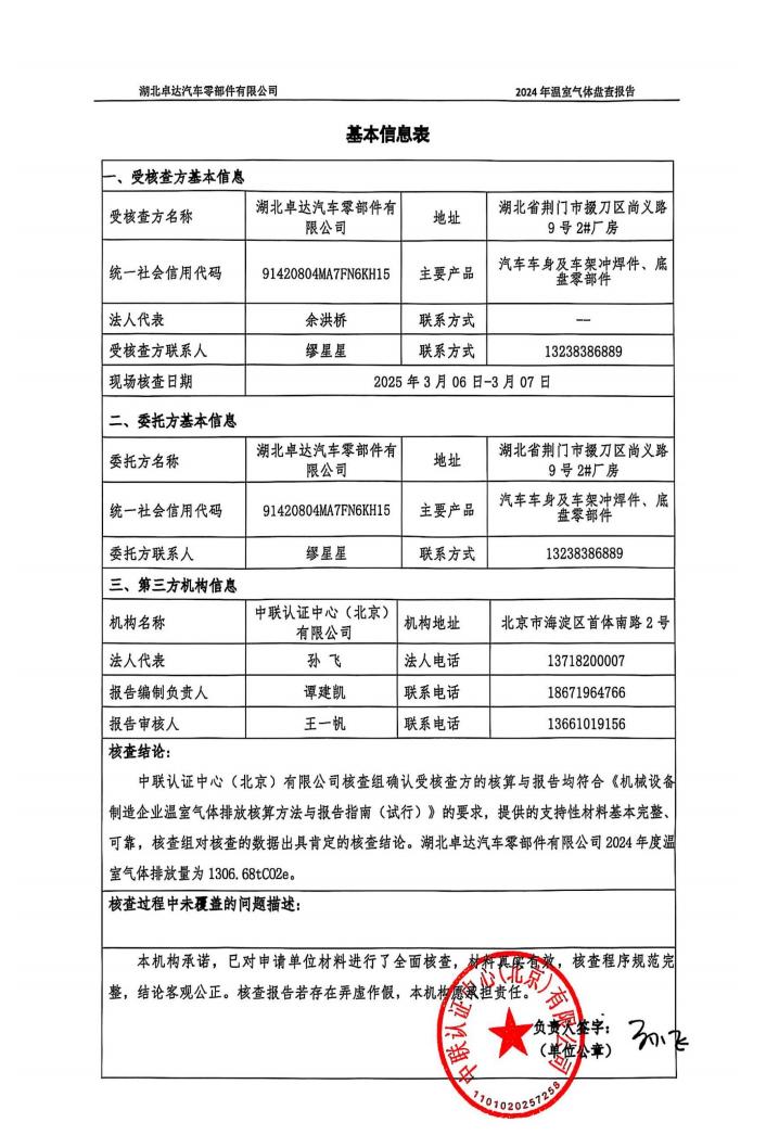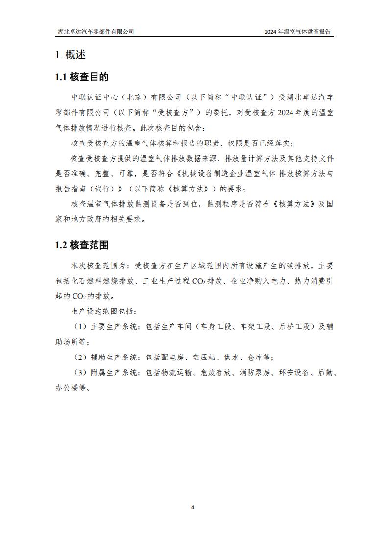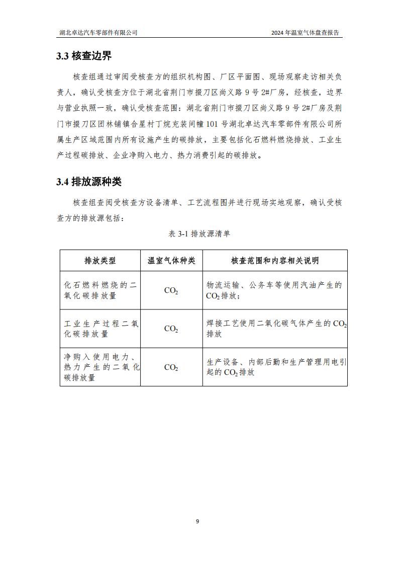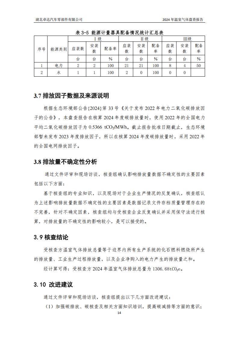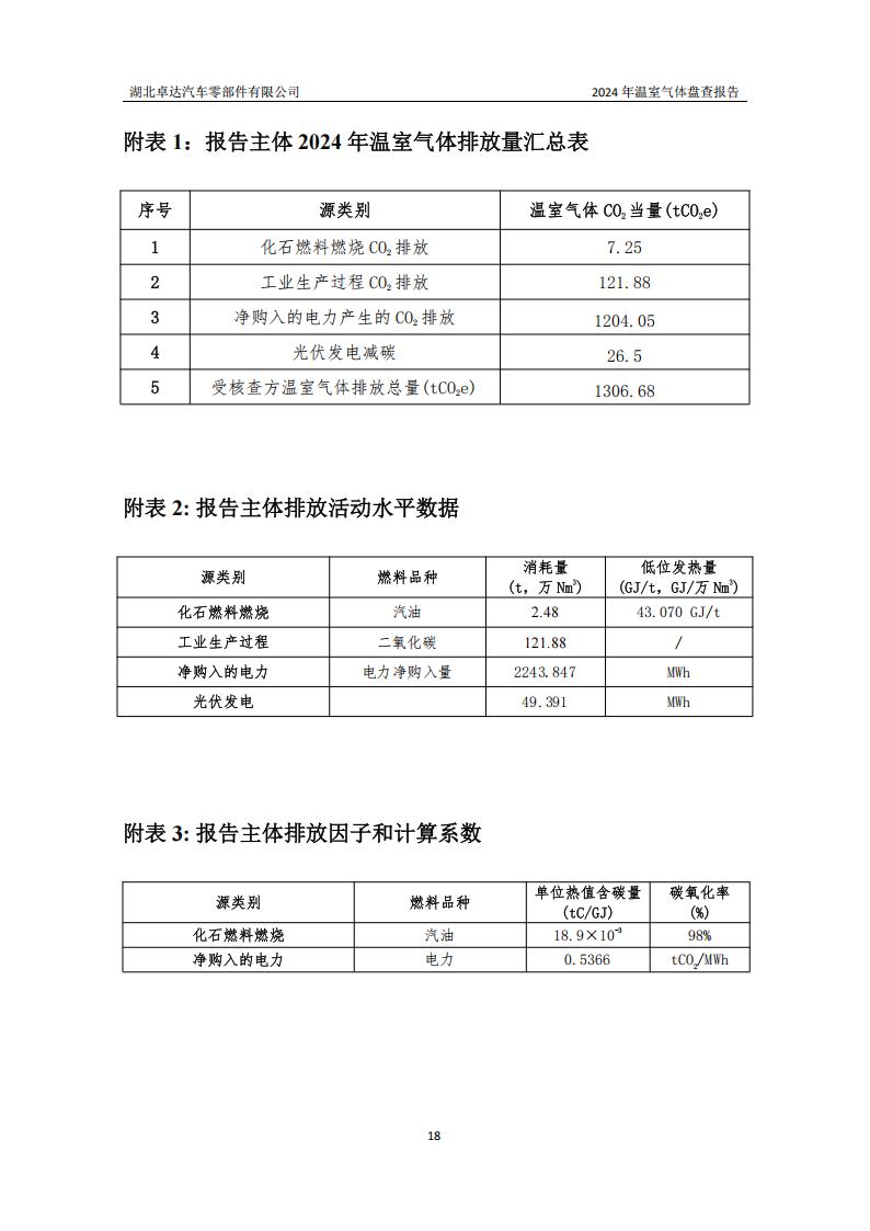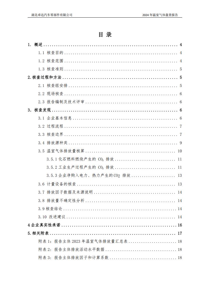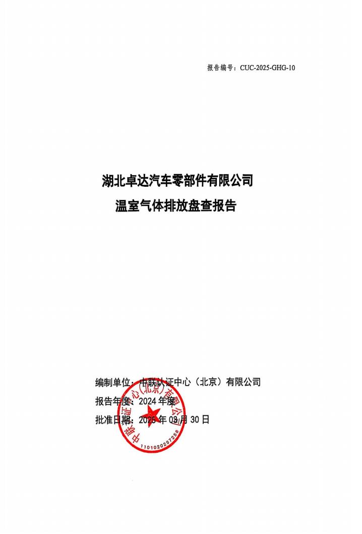 湖北卓達汽車零部件有限公司溫室氣體排放盤查報告