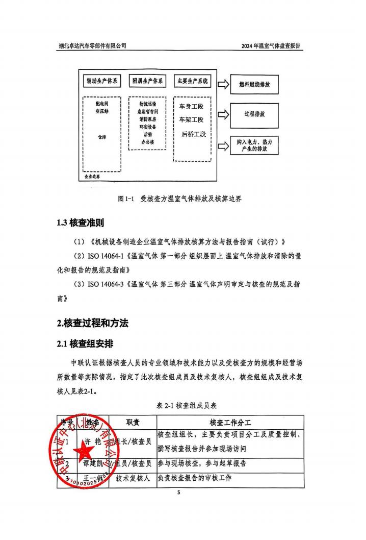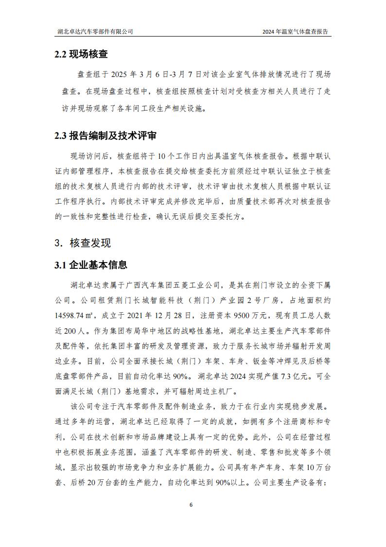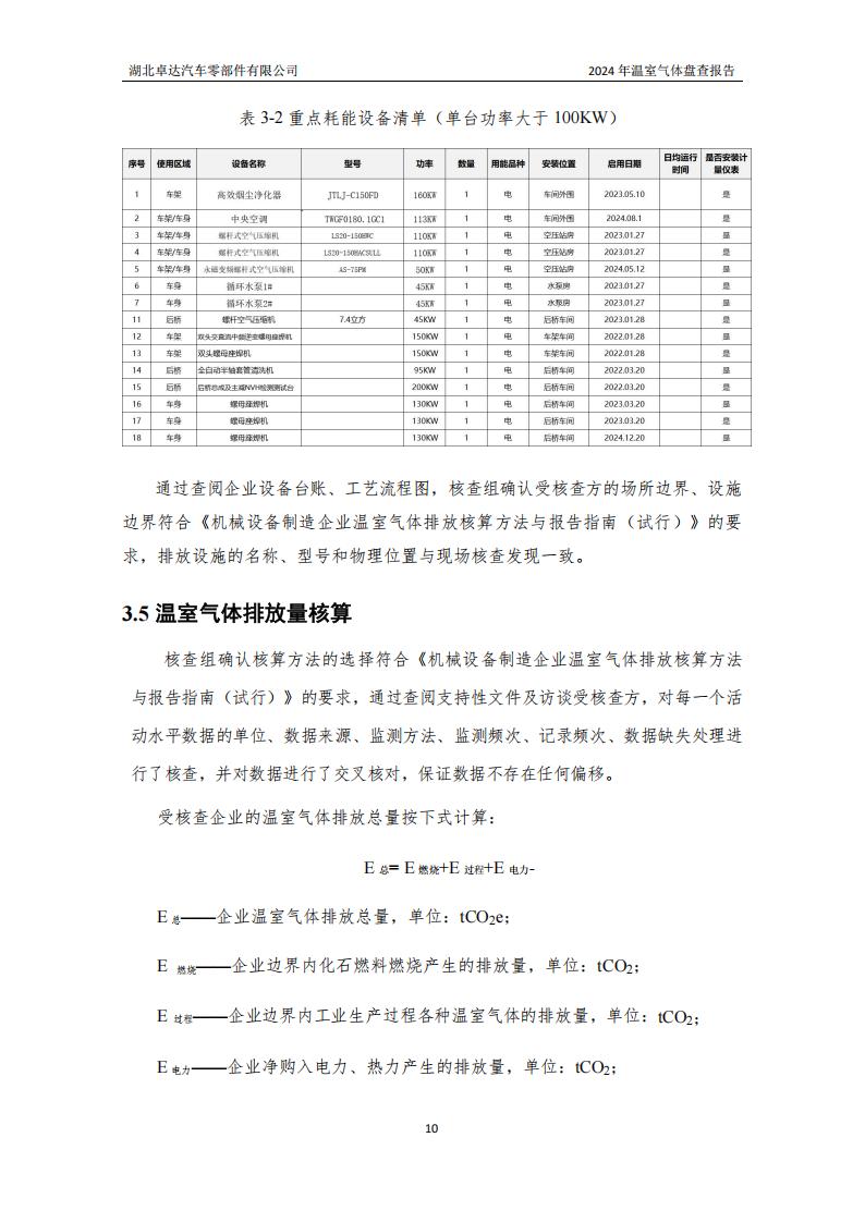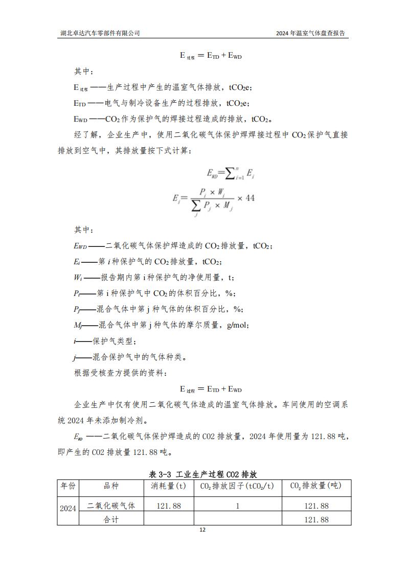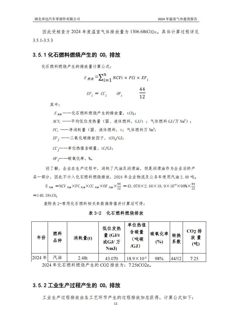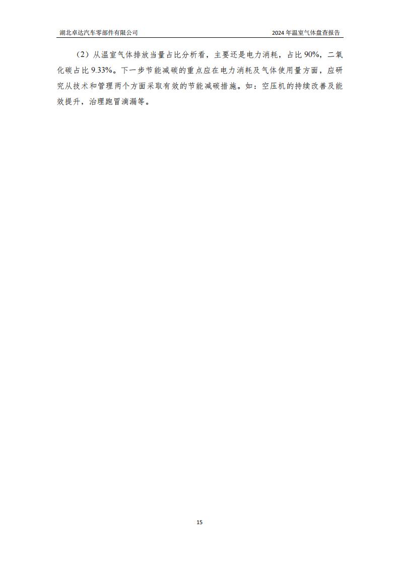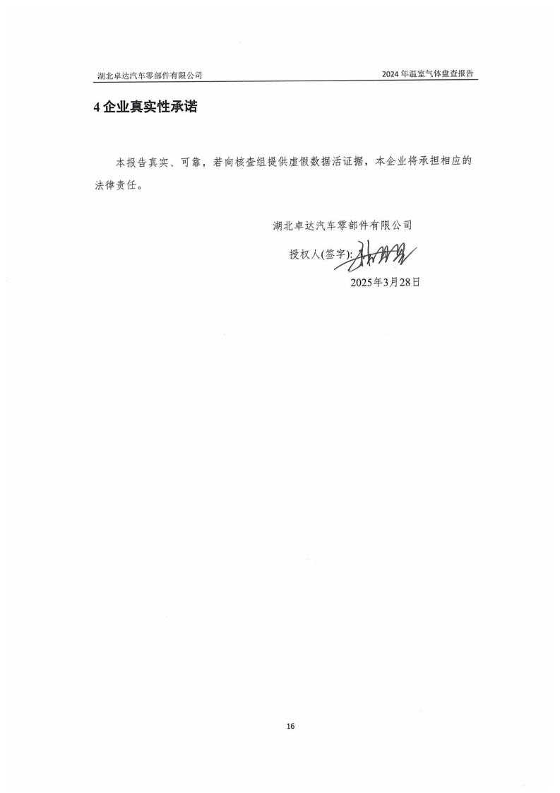 湖北卓達汽車零部件有限公司溫室氣體排放盤查報告